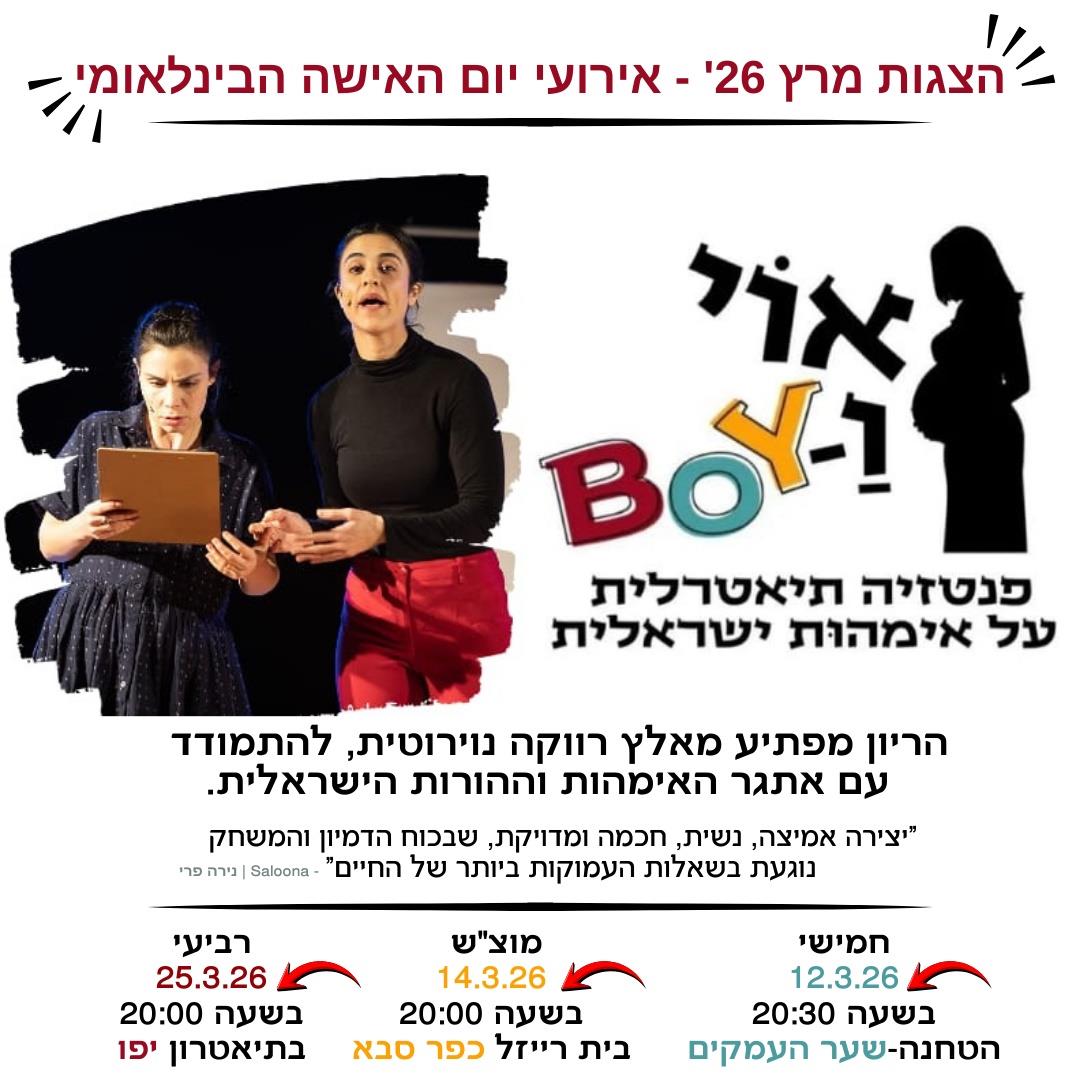 רביעי 25.3.26 - בשעה 20:00 - בתיאטרון יפו כתובת: טיילת מפרץ שלמה 10